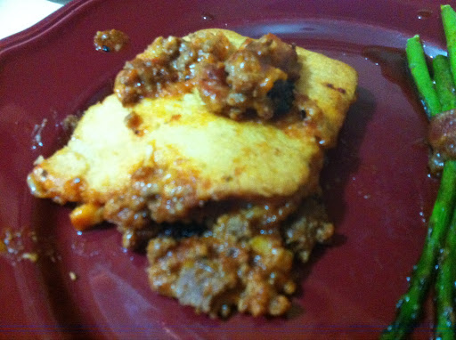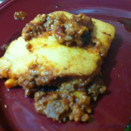 In a greased 9x13-inch baking dish, spread a layer of meat sauce mixture. Top with 1/2 of the mozzarella and Parmesan cheeses, another layer of sauce and the rest of the cheese. Top with crescent rolls, pinching seams together.