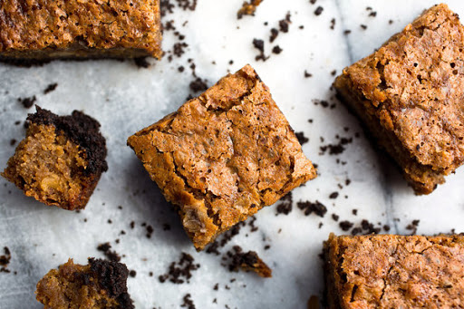 6. Transfer pan to oven and bake until the top is firm and a toothpick inserted in the center emerges with a few crumbs attached (or clean) but not wet, 45 to 55 minutes. Cool completely on a wire rack; cut into 24 bars.