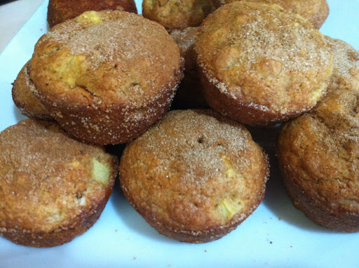 Grease muffin pans. In small bowl, combine brown sugar, pecans, and cinnamon. In large bowl, combine flour, sugar, baking powder and salt. In third bowl blend milk, oil, egg and apples. Then mix all together only until moistened well. Spoon into pan and bake for 18 to 20 minutes. Optional: Sprinkle sugar/cinnamon mixture on top of the muffins before baking
