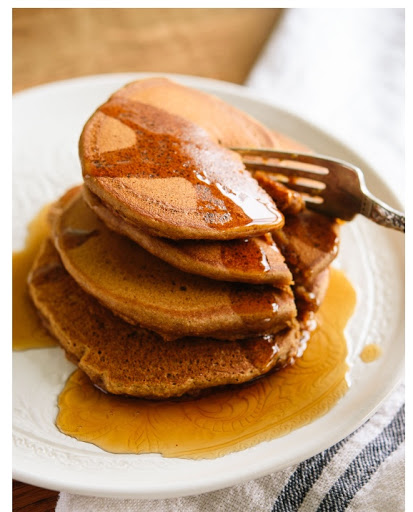 This is from an extraordinary inventive blog, Cookie + Kate. It yields 8 medium pancakes