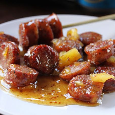 In a large skillet add a small amount of oil and brown the sausage in two batches. Remove the sausage from the pan with a slotted spoon and place into a chafing dish or crock pot.