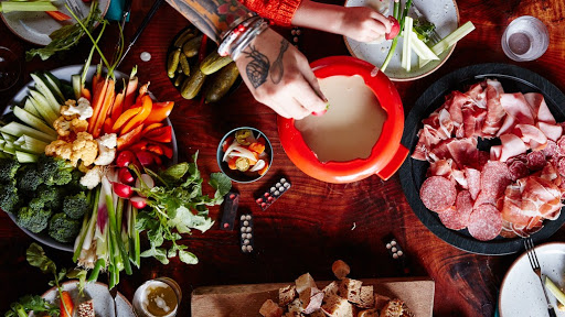 Whisk bourbon and baking soda in a small bowl to combine, then whisk into fondue, followed by lemon juice; season with salt. Transfer to a fondue pot and serve with bread, ham, salumi, pickles, and crudités for dipping.
