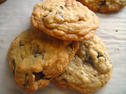 One of the best chocolate chip cookie recipes I have ever tried! The resluts are fat, chewy cookies with a flavour that is pure and true to what a chocolate chip cookie should be. This is because there is no vanilla extract called for in the recipe! Anyone who likes their cookies soft and thick will love these!