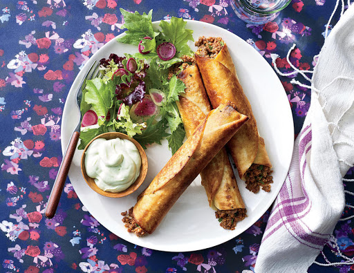 This restaurant favorite is easy to make at home, even on a weeknight. While the oil heats, set up an assembly line with the cooked meat, tortillas, and egg wash, and get rolling!