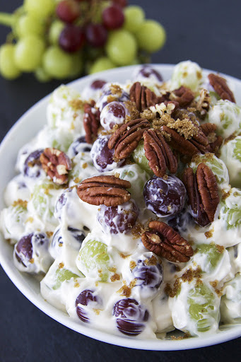 Wash and dry grapes. Mix remaining ingredients in a large bowl. Add grapes. Refrigerate a few hours and serve.