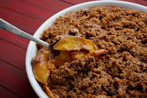 Distribute the topping evenly over the surface of the filling. To crisp up the topping, if desired, spray lightly with the canola cooking oil spray. Bake for 27 to 30 minutes; the topping will be slightly darker and the peaches will be tender but not mushy. Allow to cool for 10 minutes before serving.