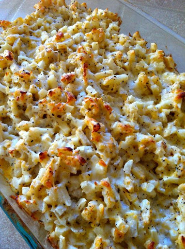 Easy, peasy and yummy! Although this recipe is much lower in fat and calories I suggest to make it with 2% milk and regular cheese as it still needs some fat, otherwise it will turn out watery.