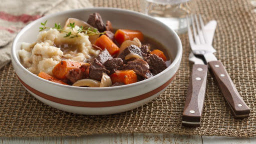- 2 1/2 lb beef chuck roast, cut into 1-inch cubes