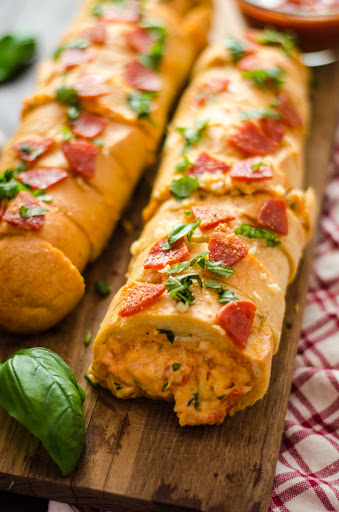 "PEPPERONI PIZZA STUFFED GARLIC BREAD