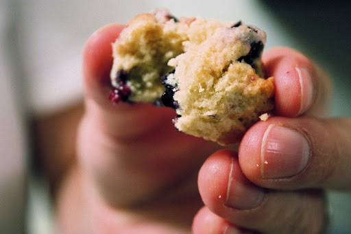 Toss blueberries in remaining flour in a separate bowl and carefully fold into dough. Don’t press to hard or blueberries will explode!