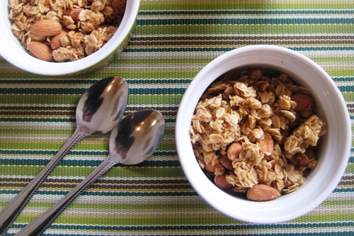 Stir in the almonds or add them to taste upon serving. Store in an airtight container. Freeze for longer shelf life.