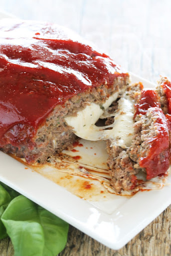 Divide meat in half. Shape one half of the meat into the bottom half of the loaf and place in prepared pan. Place mozzarella slices down the center, leaving ½ inch around the ends and sides. Shape remaining half of meat as the top half of the loaf, sealing the edges. This is a free-form loaf so it doesn't need to be perfect.