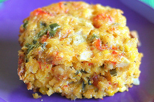 This cornbread is lovely beside a bowl of Red Beans and Rice, but cut into small squares it makes a nice nibble. It is even hearty enough to serve with a nice green salad for a meal.