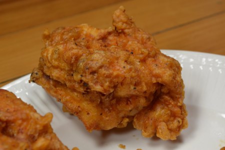 Place the chicken on wire rack set over a foil-lined, rimmed baking sheet. Allow it to drain then pat with paper towels. Place in 200-degree oven while you prepare the second batch.