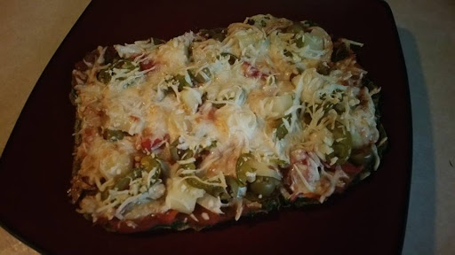 Add sauce, toppings and cheese. Put back in the oven until cheese is melted!