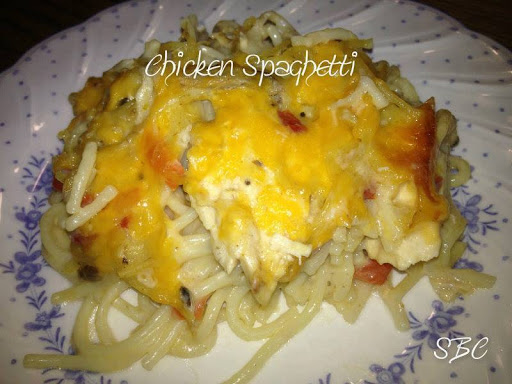 Cook spaghetti in same chicken broth. Do not overcook. When spaghetti is cooked, combine with all of the remaining ingredients except for the additional cup sharp cheddar.