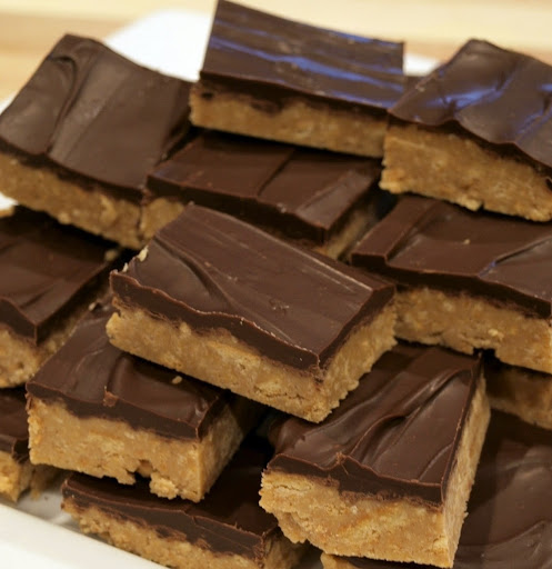 Combine graham crumbs with sugar and peanut butter and mix thoroughly. Blend in melted butter until well combined. Press mixture evenly into a 9 x 13 inch pan. Melt chocolate chips in a microwave oven or in a double boiler. Spread over the peanut butter mixture. Refrigerate until set and cut into bars before they solidify completely.