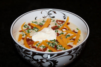 - Optional garnishes: chopped chives, bacon bits, sour cream, shredded cheese and scallions