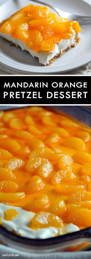 Mandarin Orange Pretzel Dessert – This classic dessert features a crunchy pretzel crust, a creamy center, and silky top with mandarin oranges and orange flavored gelatin. Perfect for a summer luncheon!