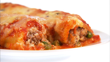 Spread half of the marinara sauce over the bottom of the prepared baking dish. Using a small spoon, fill the manicotti shells with the sausage filling and arrange in a single layer in the baking dish. Pour the remaining marinara sauce on top of the filled shells. Spoon the remaining fonduta sauce on top and sprinkle with the mozzarella. Drizzle with olive oil and bake until bubbly and golden brown, 30 to 35 minutes.