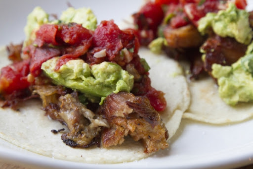Remove the pork to a cutting board, leaving behind as much fat as possible. (You can refrigerate the lard to use for another round of carnitas, to season beans or fry potatoes or the like.) Shred the carnitas into very large, coarse pieces. When the pan is very hot, spoon in enough carnitas-cooking fat to film the bottom generously. Scoop in the pork, spreading it out evenly over the bottom of the pan. Cook undisturbed for a couple of minutes, until it is richly browned and releases itself from the bottom of the pan. Gently turn the pieces to brown the other side. Remove to a plate lined with paper towels. Sprinkle with salt (coarse salt is welcome here, if you have it). Serve on a warm platter with the salsa, guacamole, lime wedges and warm tortillas.