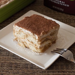 Quickly dip 24 ladyfinger halves, flat sides down, into coffee mixture. Place halves, dipped sides down, in the bottom of an 8-inch square baking dish (halves will be slightly overlapping). Spread half of cheese mixture over ladyfingers; sprinkle with 1 teaspoon cocoa. Repeat procedure with remaining ladyfinger halves, coffee mixture, cheese mixture, and 1 teaspoon cocoa.