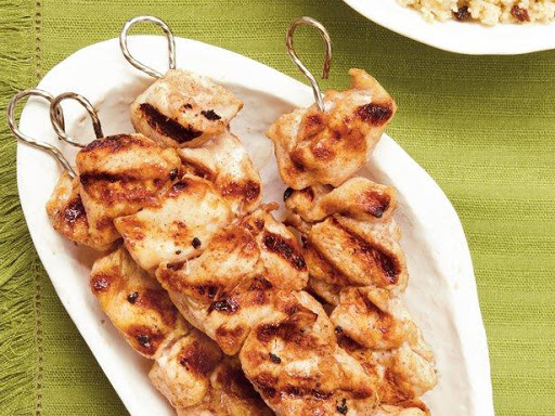 1 Heat gas or charcoal grill. In large bowl, mix preserves, cumin, cinnamon, coriander and salt. Place chicken pieces in bowl and turn to coat. On each of 4 (10- to 12-inch) metal skewers, thread chicken.
