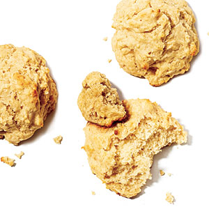 5. Drop batter in mounds of 2 heaping tablespoonfuls onto a baking sheet lined with parchment paper. Bake at 450° for 11 minutes or until golden. Cool 3 minutes; serve warm.