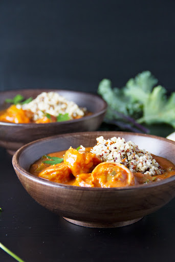 Lastly, add in the shredded kale. Remove from heat and serve! Top each serving with quinoa.