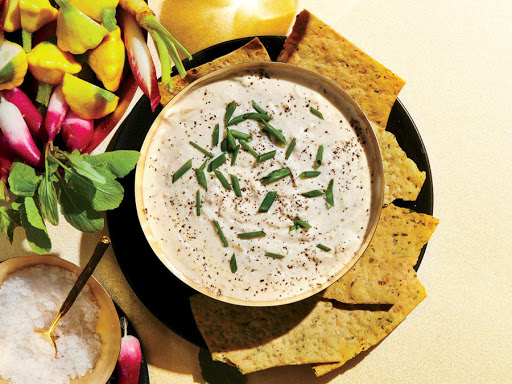 This tangy twist on fundido (from goat cheese) is perfect paired with crisp veggie chips, but you can also serve it with crudités for a fresher take. The dip is very easy to put together. One note on mixing: Blend the beans until they are completely smooth and pureed for the silkiest, creamiest results. You can’t overblend it, but if you stop too soon, the dip might have a few lumps. The great thing about this dip is that it can be made ahead and rewarmed when you’re ready to serve it. To reheat, stir gently over low heat until hot. For an herby version, add a generous 1⁄4 cup of a mix of chopped herbs, such as parsley, chives, and a little basil.