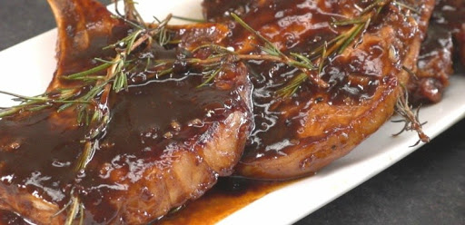 Flip the pork chops, add the reserved marinade and the remaining rosemary sprigs. Bring the added reserved marinade to a boil. Cook another 3 to 5 minutes, until the pork chops are done and the sauce has thickened.