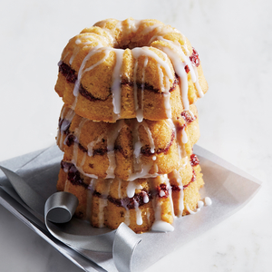 Spoon about 2 tablespoons batter into the bottom of each of 12 mini ­bundtlette cups coated with baking spray, spreading into an even layer. Drop about 3 tablespoons raspberry mixture evenly into each cup, spreading evenly on top of batter. Top evenly with remaining batter, smoothing tops with a spatula. Bake at 350°F for 20 minutes or until a wooden pick inserted in centers comes out clean. Cool in pans on a wire rack 10 minutes; remove cakes from pans. Cool completely on wire rack.