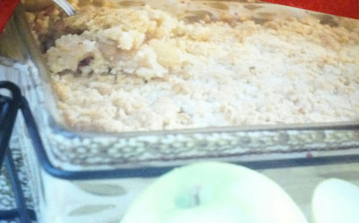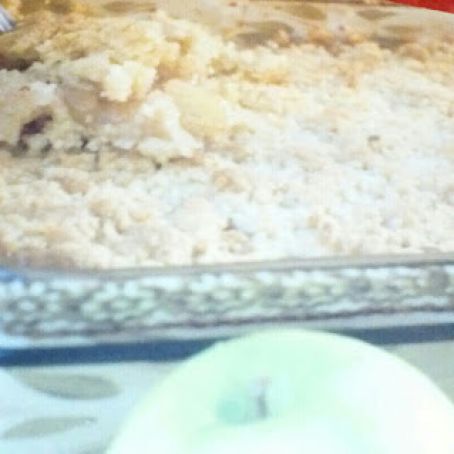 3. Pour apple mixture into a lightly greased 13x9 baking dish.Sprinkle topping mix evenly over top of apples.