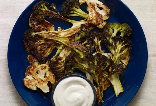Roasted Broccoli & Cauliflower with Queso Cotija Sauce