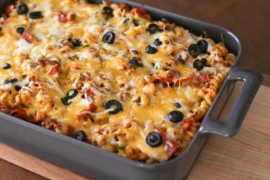 Combine the beef and pepperoni sauce mixture with the drained pasta. Toss to blend thorougly.