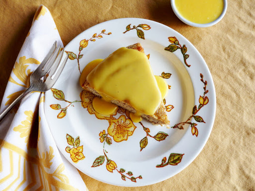 Cool in pan 10 minutes. Run a knife around the edge of the pan to loosen cake. Invert cake to remove from pan and remove parchment paper. Reinvert cake and transfer to a wire rack to cool completely. Using a serrated knife, slice and serve with a spoonful of Lemon Curd.