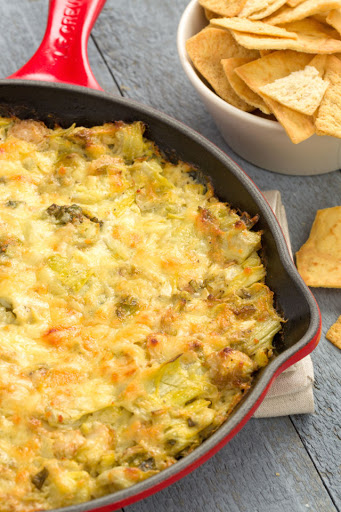 The classic spinach dip is given an artichoke twist. Try it, you won't be disappointed! Serve hot with pita chips or baguette slices.