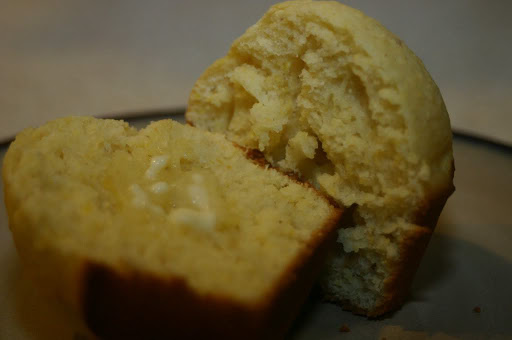 Fill well greased muffin tins 3/4 full and bake 15-20 minutes until golden brown or divide into 2 pans and bake 30 minutes.