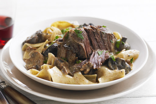 Succulent slow cooked short ribs is what you'll find in this scrumptious stroganoff in a velvety sour cream sauce. For added color and texture, serve with a mixed green salad tossed with your favorite Kraft Dressing.