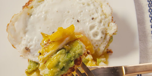 In a small bowl, mash avocado with lemon juice. Season with salt. Spread on top of cauliflower “toast.” Sprinkle with red chili flakes. Top each with a fried egg. Serve immediately.