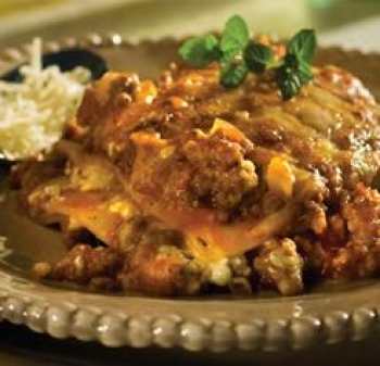 Second through fifth layers: Layer noodles, then top with a slightly thicker layer of the beef and sausage mixture, then 1/4 of the cottage cheese. Top with 1/4 each of the remaining cheeses. Repeat 3 times.