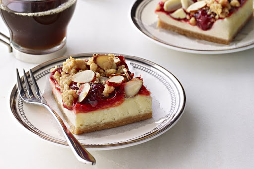 Beat remaining cream cheese, sugar, eggs and extract until blended. Spread over crust; top with pie filling. Combine nuts and reserved crumb mixture; sprinkle over pie filling.