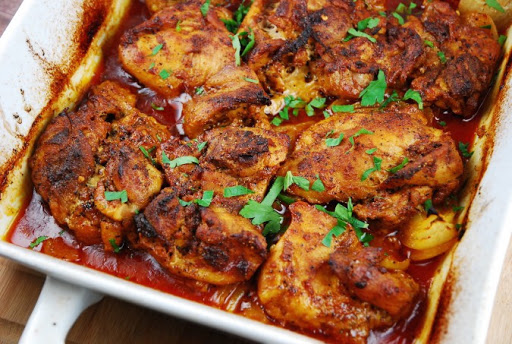 - 2 lbs skinless chicken thighs, cut into 12 pieces