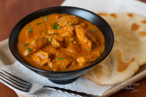 Add ground cumin and paprika to the butter in the pot and cook, stirring rapidly, for 10-15 seconds. Add the tomato mixture, salt, cream, yogurt and chicken pieces (with any juices that have accumulated in the bowl) to the pot. Gently stir the chicken to coat the pieces. Cover and lock lid in place. Select High Pressure and 5 minutes cook time. When timer beeps, turn off and use a natural pressure release for 10 minutes. After 10 minutes use a quick pressure release to release any remaining pressure.