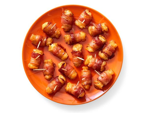 Wrap each 1/2 slice bacon around a frozen tater tot and arrange seam-side down on a parchment-lined baking sheet.