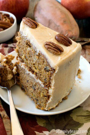 19.Decorate the top of the cake with the whole pecans. Serve or refrigerate until ready for service.