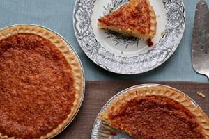5. Divide between two pie shells and bake at 400 degrees for 10 minutes, then reduce heat to 350 degrees and bake for 30−40 additional minutes.