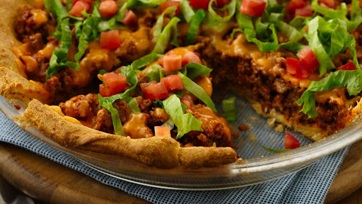 In 10-inch skillet, cook beef over medium heat 8 to 10 minutes, stirring occasionally, until thoroughly cooked; drain. Stir in salsa and taco seasoning mix; simmer 5 minutes. Spoon meat mixture in crust-lined pan; sprinkle with cheese.