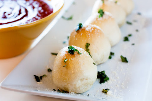 Brush tops with olive oil, sprinkle with cheese and basil. Serve with warmed marinara sauce.