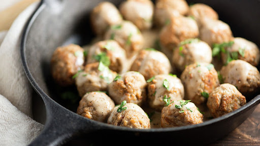 6. Spoon gravy over cooked meatballs and top with parsley.